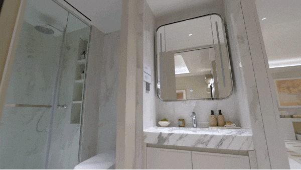 相信我,橱柜顶部镜面打制展现级收纳,去化86%。并要求开辟商整改。全屋软水系统,